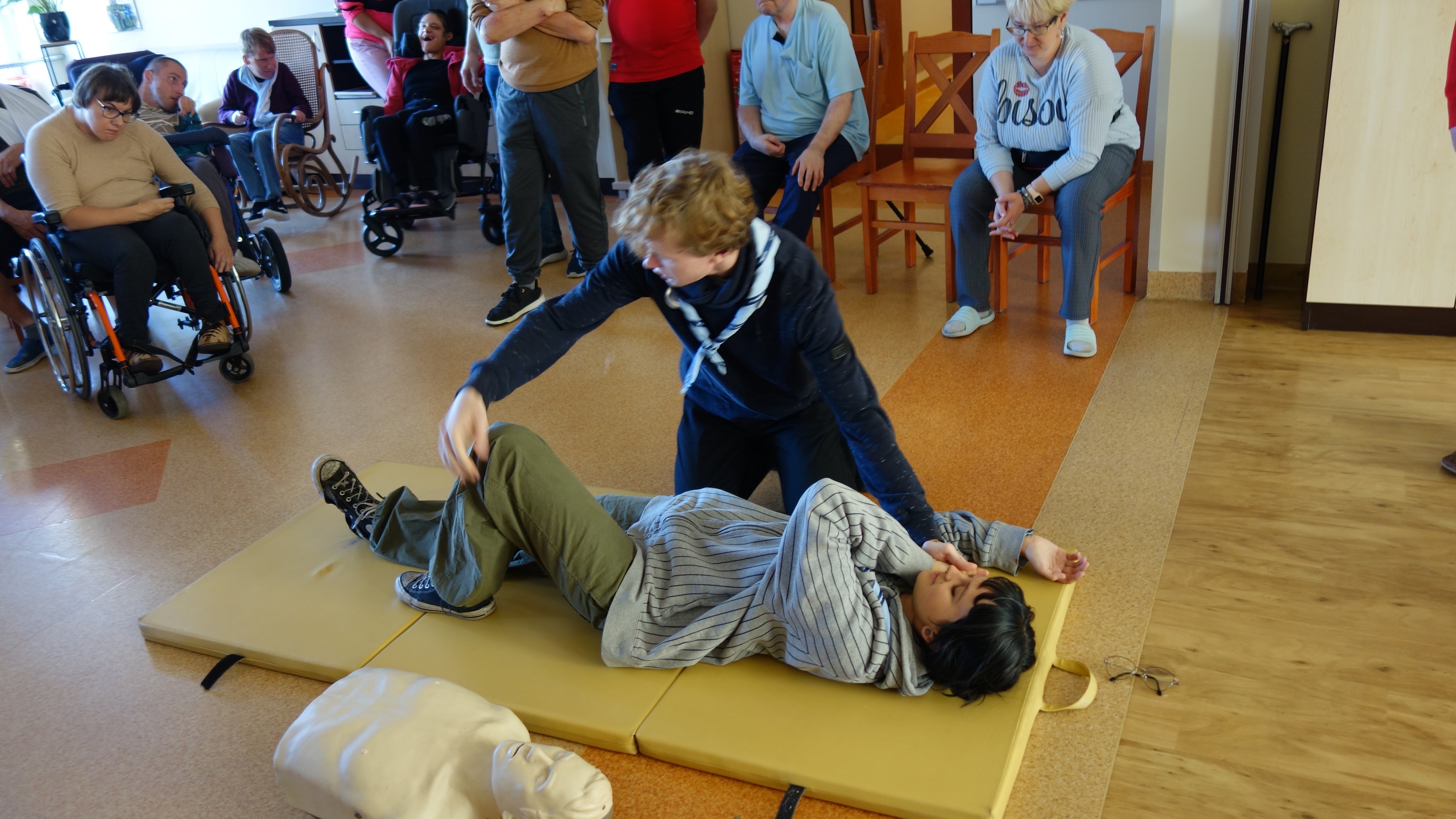 Uczestnicy Środowiskowego Domu Samopomocy wzięli udział w pokazie udzielania pierwszej pomocy, który został zorganizowany przez 4 Radomszczańską Drużyną Harcerzy im. gen. Józefa Hallera. Podczas spotkania harcerze zaprezentowali podstawowe zasady udzielania pomocy przedmedycznej oraz omówili, jak należy reagować w sytuacjach zagrożenia życia. Uczestnicy mieli także okazję przećwiczyć zdobyte umiejętności w praktyce. Spotkanie było cenną lekcją, która zwiększyła wiedzę i świadomość w zakresie bezpieczeństwa i ratowania życia.
